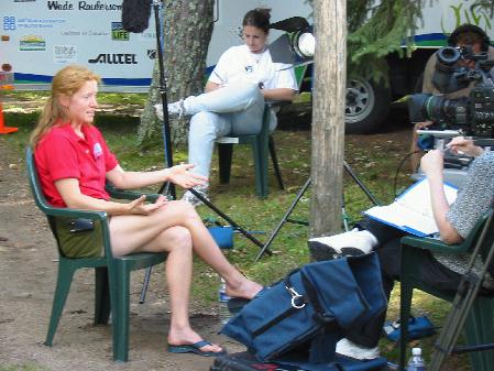 We also got the first taste of what the PR machinery will be like, in that a video crew from Johnson & Johnson (Our premier ride sponsor) arrived this afternoon to start documenting the 2002 ride. Today was the day for personal interviews of each rider, and while I know I could have (and have been told I will learn through sheer experience over the course of the ride) done a much better job at what I said, it went pretty well. ![]()