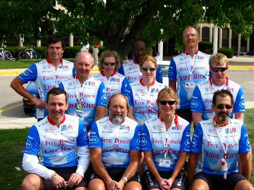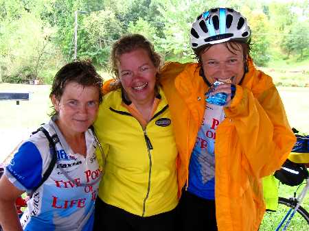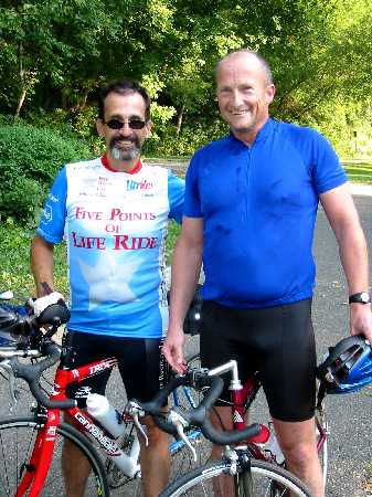 Tomorrow is our last day for yet another tag team rider from Johnson & Johnson's Ortho Clinical Diagnostic division. The rider with us at present is Rob Skawinski, who is a talented rider and a very nice guy. We do like to tease him as being our "spokes" person, as he managed to break 2 spokes on one wheel in the course of 2 days. Nothing like the bunch of us to take no mercy on the new guy! Of course we also have a couple of wonderful South African riders with us at present, at least until St Louis when they go home and 2 other South African riders join us for the last half of the ride. Dennis & Phillip are highly talented riders, very dedicated Five Points advocates, and just generally a pretty silly pair of guys that nicely round out our big albeit goofy family of riders. ![]()