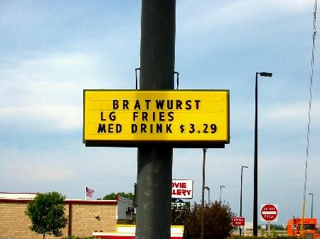 Tomorrow we ride into Illinois, our third state along our journey. I have to say that I have been very impressed with both the beauty and variety of the parts of Wisconsin that we have ridden through, and am as equally impressed by the great people that we have met. And just as Minnesota has it's eccentric nature about certain things, Wisconsin has it's own unique quirkiness. We finally learned what a "custard" is, something we had seen a lot of signs advertising. (It is basically just very rich ice cream, similar to a product like Haagen Daas) Oh yeah, and we have seen a lot of signs for "brats". I had to explain to several riders that the word is short for bratwurst, and is not pronounced like you would describe ill behaved children. However the humour highlight of the day was when we found that the local McDonald's offers a bratwurst value meal! ![]()