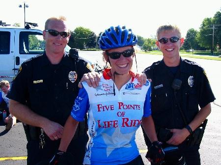 During the course of our day we do a lot of traveling through both remote and more populated areas. Today we had the pleasure of getting 2 police escorts through 4 cities. The first one in the morning took us through Watertown, WI, and went pretty straightforward. The afternoon escort was an incredible event, as it involved 3 different police departments from 3 different cities in the western suburbs of Milwaukee, WI. It was a full blown "blow through every intersection we came to" event, and it was unique to see the cooperation between the police departments in each city as they got to the edge of their city and handed us off to the next police department. The Five Points of Life Ride is a serious event we are all taking part in, but for the simple "fun" factor, this afternoon's police escort was VERY cool! :-) ![]()