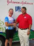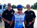 Nick, Fred & PhylissThe final destination for our day was the wonderfully picturesque city of LaCrosse, WI. It was a beautiful day for a ride, and some of the team members were commenting that it was quite hot. OK, so all of the team members complained about the heat, save for the South African riders and myself. I thought it was a beautiful sunny day, and since I barely broke a sweat on the hills, did not really figure it was hot. Pretty much all of my weekend training rides since about last May have been warmer than this, so I am very acclimated to the heat. As a result of my comment today about it not being hot, I don't believe I will be allowed to comment on the weather again. Oh well, maybe when it starts to actually get hot out they will forgive me? :-)