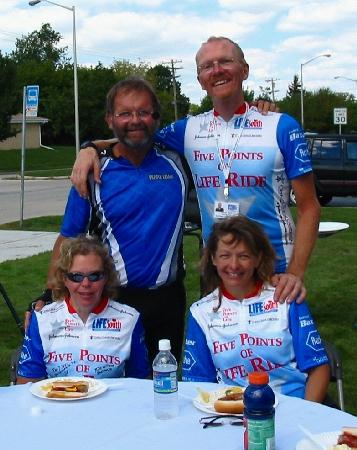 Today we also had alumni riders with us (Riders from previous Five Points of Life rides), along with a local guest rider from the Lions Eye Bank of Wisconsin. The advantage of having a local rider was very evident in that riding with her in our group kept us from ever missing a single turn! Another advantage of having a local rider in the group is that when the mileage on the turn sheet did not match up with the actual mileage, she made good on her promise that if the mileage was wrong, she would buy Dairy Queen for those wanting to take her up on it. (We keep getting promises of Wisconson Cheese Curds, but we haven't seen them yet...) ![]()